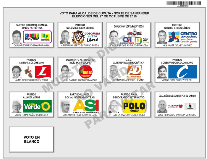 En la tarjeta electoral para la Alcaldía de Cúcuta, entre tanto, aparecerán doce caras con los respectivos partidos que los avalan.