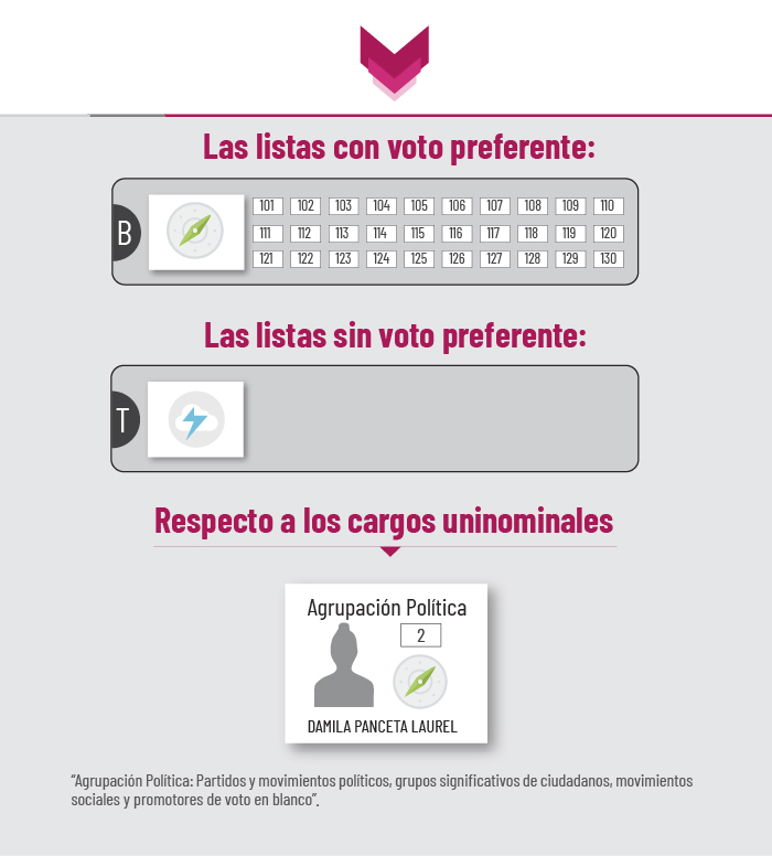 Voto no preferente: Son las que le brindan a los electores la opción de votar únicamente por la agrupación política.