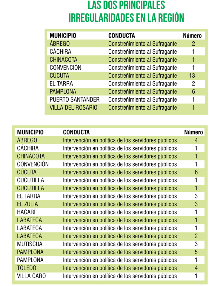 La anomalía más reportada es sobre la intervención en política de funcionarios públicos. También hay denuncias sobre constreñimiento al sufragante y de violación al régimen de propaganda electoral.