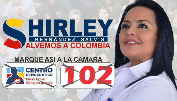 Candidata por el Centro Democrático a la Cámara. Lema: ‘Salvemos a Colombia’.