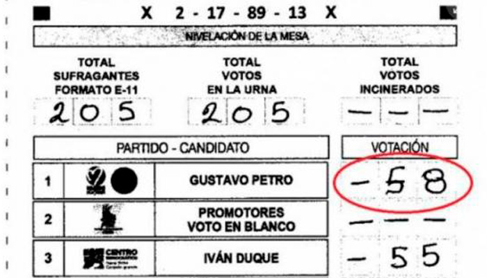 Este es un ejemplo de presunta modificación en los números del Gustavo Petro: