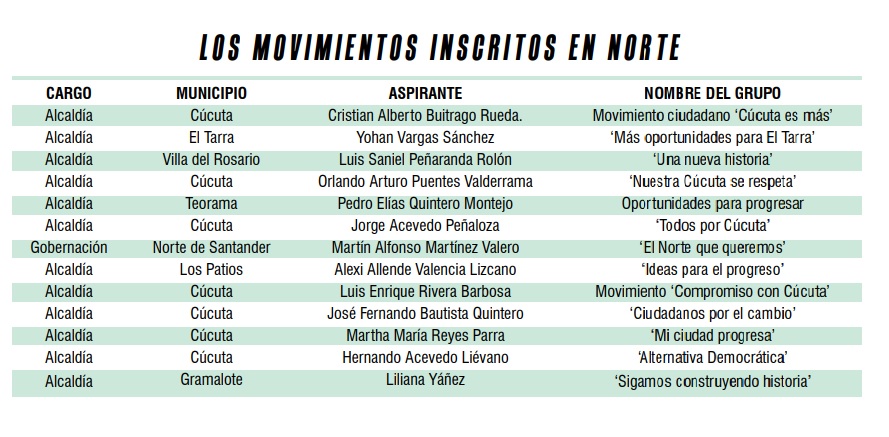 Solo en Norte de Santander, la cifra de aspirantes que busca meterse en la contienda del 27 de octubre, por la vía de las firmas asciende ya a 13. El mayor número de inscritos busca validar su aspiración a la Alcaldía de Cúcuta: siete en total (ver recuadro).
