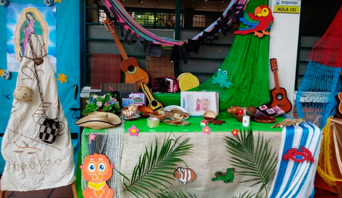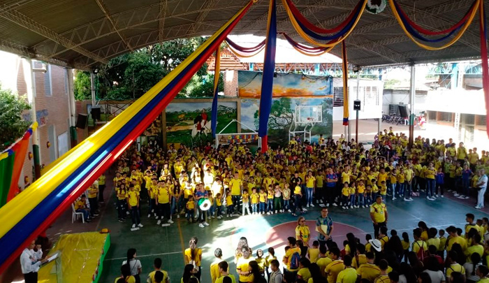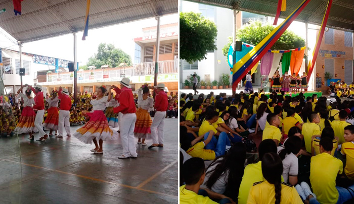 Por un día, las instalaciones de la institución fueron amarillo, azul y rojo, con grandes banderas colgando del techo y un solo propósito, enaltecer el folclor colombiano, enseñando a los niños y jóvenes las tradiciones culturales que hacen del país, un lugar diverso y único.