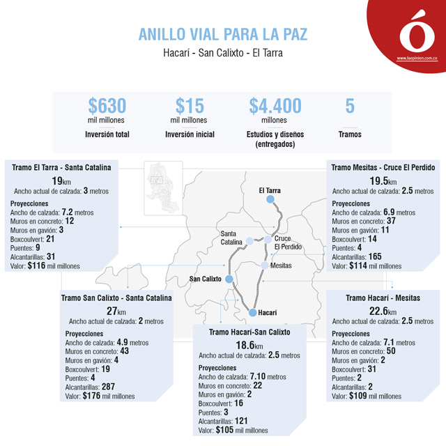 Quince mil millones de pesos aportará la Gobernación de Norte de Santander para los trabajos del Anillo Vial para la Paz en el Catatumbo y 5 mil millones los dará el Gobierno Nacional, para un total de $20 mil millones de los primeros $30 mil que requiere la ejecución del proyecto.
