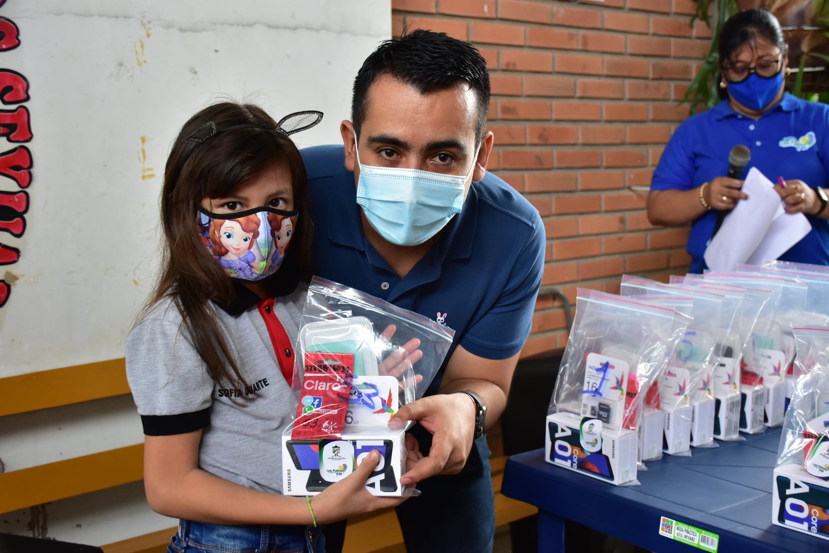 Alcaldía de Los Patios continúa entregando celulares a niños de bajos recursos