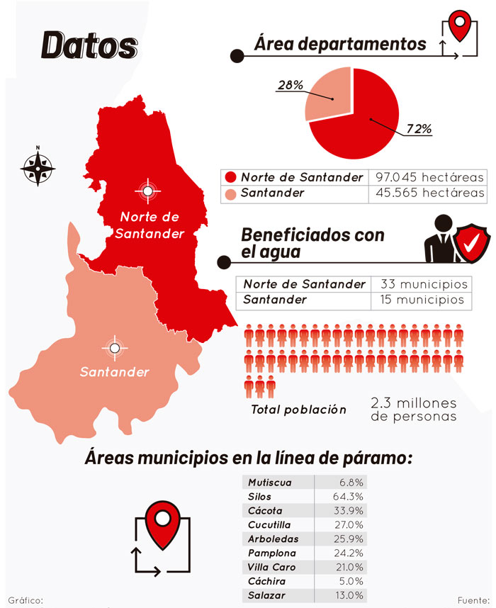Esto significa que el 72% se encuentran en Norte de Santander y en Santander hay 45.565 hectáreas (28%), cuyas comunidades viven del agua que se produce en las zonas de alta montaña.