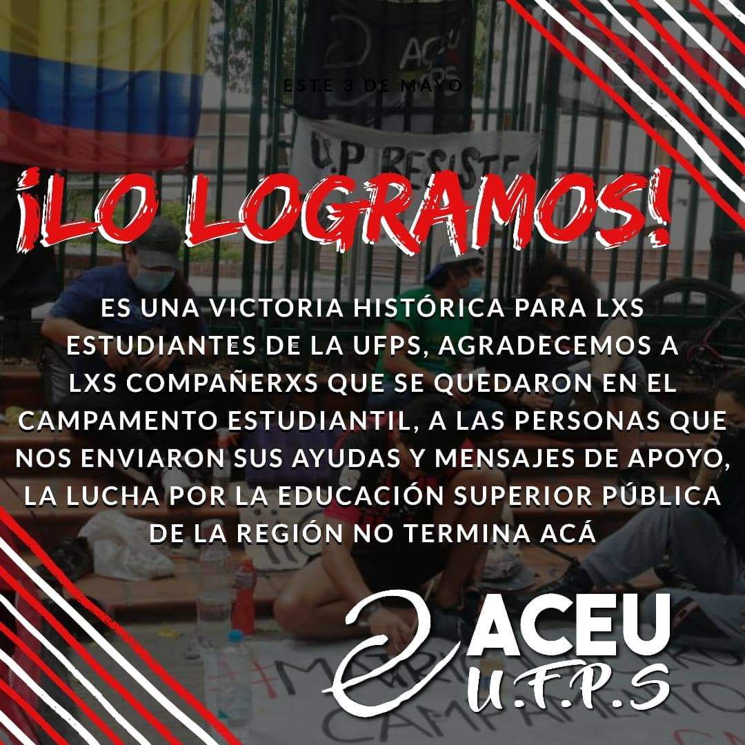 Los jóvenes que desde el domingo permanecían en protesta pacífica en las afueras de la Gobernación de Norte de Santander, pidiendo a las autoridades que se aprobara la medida para el segundo semestre del año, hoy vieron el resultado de su esfuerzo.
