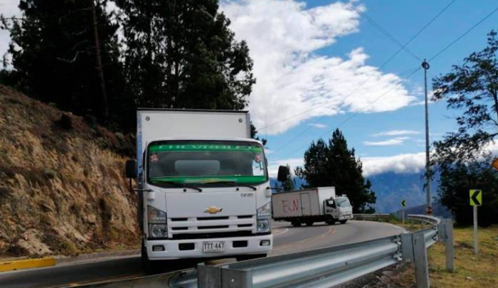 Dos vehículos, pintados con grafitis alusivos al Eln, fueron atravesados en la vía que comunica a Bucaramanga con Pamplona, sector Pocapiedra, la mañana de este sábado.