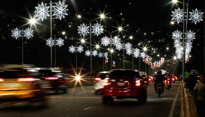(Así se ve el puente Carlos Ramírez París, que comunica a San Mateo con la avenida Diagonal Santander, con las luces navideñas. | Foto: Mario Franco.)