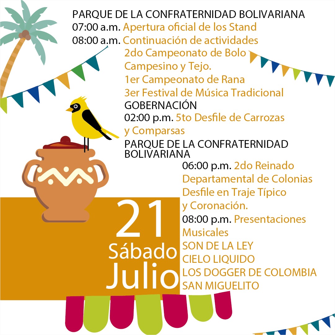 El Quinto Festival Departamental de las Colonias se llevará a cabo del 19 al 22 de julio del año en curso.