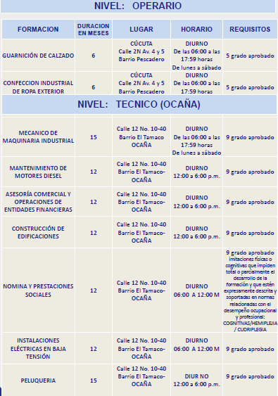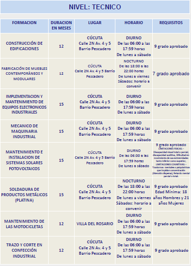 Los interesados podrán elegir procesos de formación como auxiliares, técnicos, tecnólogos u operarios.