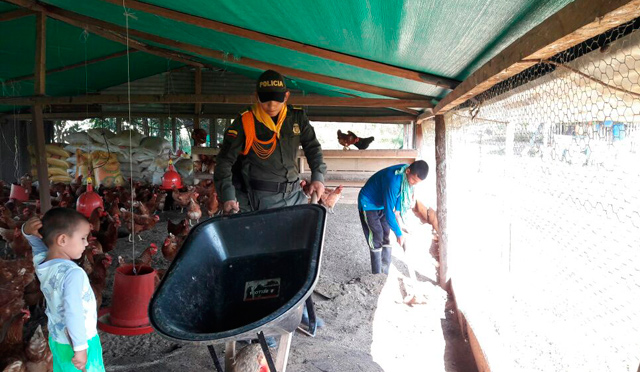 En la vereda Caño Indio, además, exguerrilleros de las Farc crían gallinas con apoyo de la Policía.