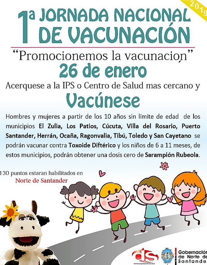 Este sábado 26 de enero se desarrolla la I Jornada Nacional de Vacunación y en Norte de Santander hay 130 puntos habilitados para la inmunización gratuita, entre las 8 de la mañana y las 3 de la tarde.