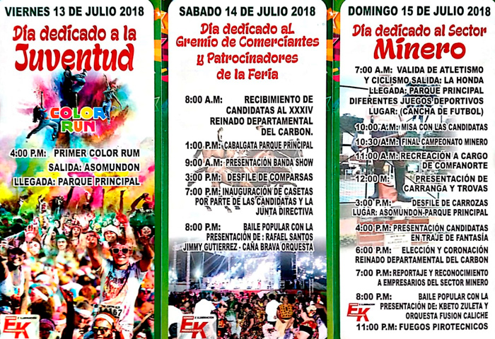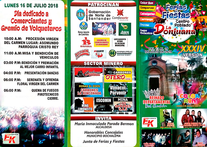 De concursos, comparsas, cabalgatas, juegos pirotécnicos, trovas, actividades litúrgicas, artistas y el reinado departamental del carbón podrán disfrutar en La Donjuana (Bochalema), entre el 13 y el 16 de julio.