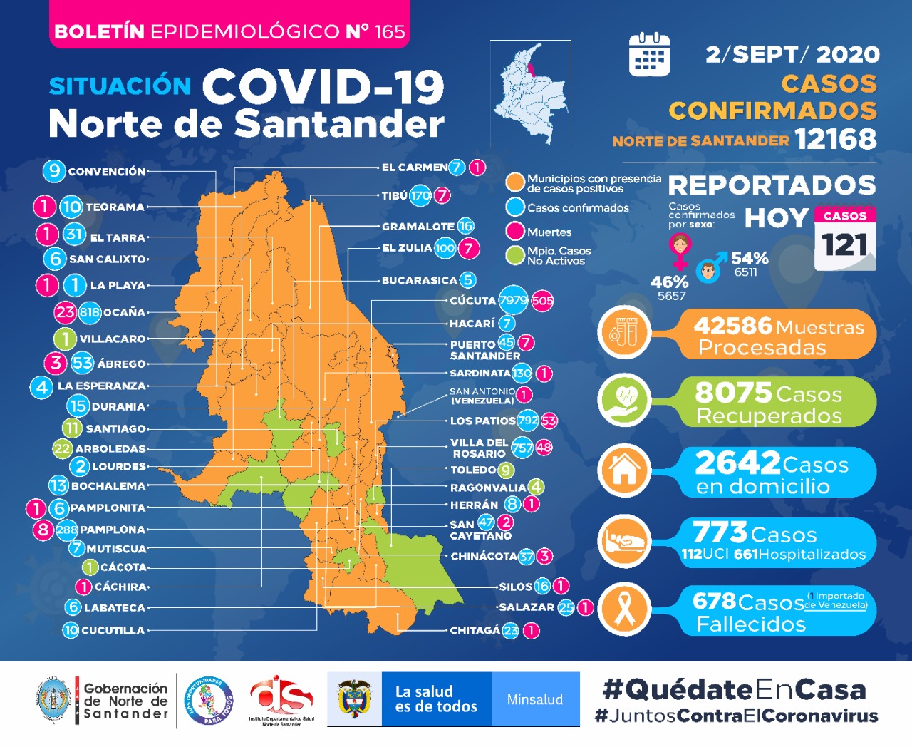 De los 121 casos de coronavirus reportados en las últimas horas, 76 corresponden a la capital de Norte de Santander.