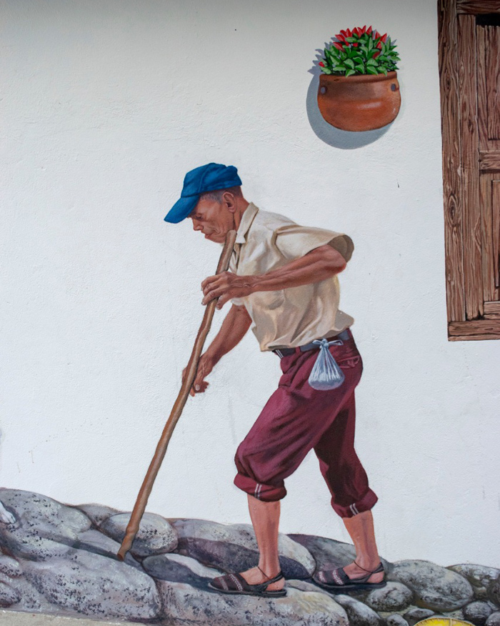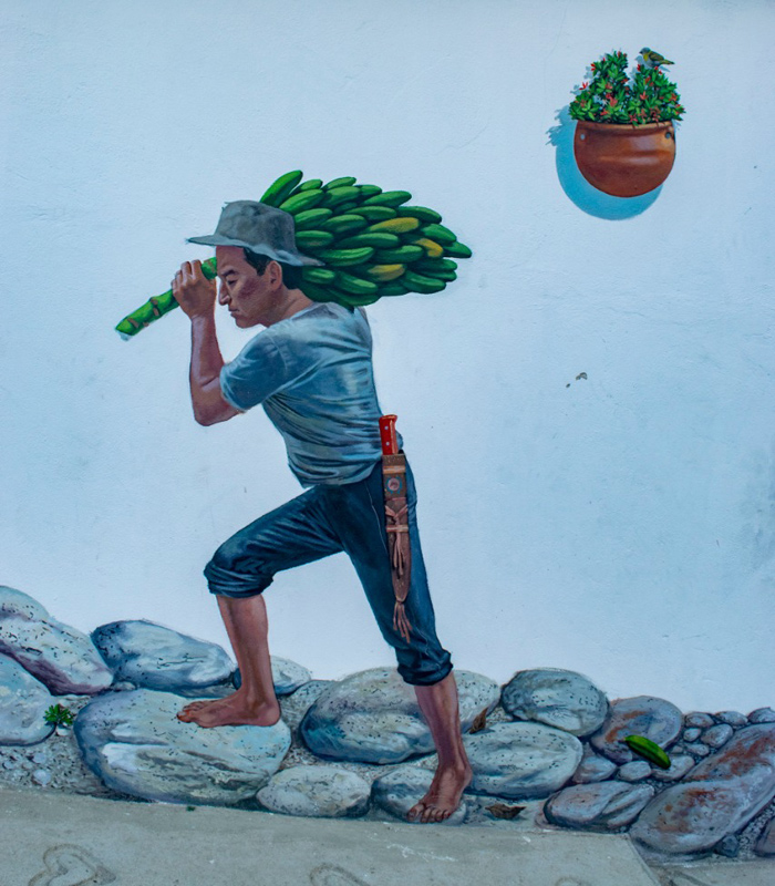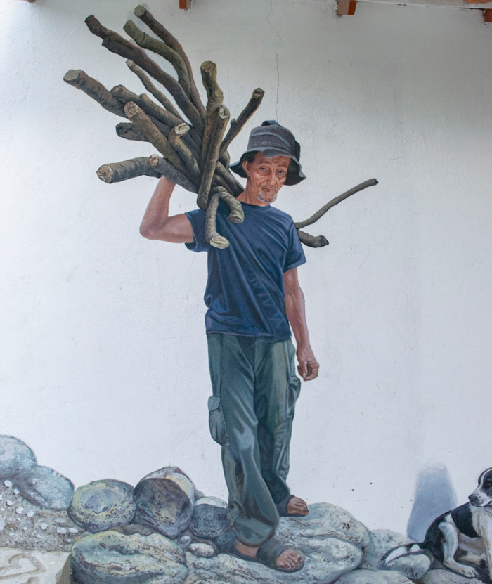 En el camino real del sector El Callejón, ruta usada por quienes van y vienen del río, el artista plástico Juan Carlos Morales pinta a los personajes que hacen parte de la historia del pueblo.
