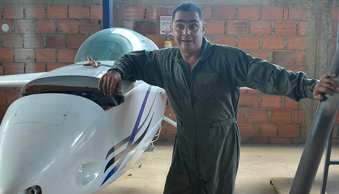 “Inicialmente, estuve en mecánica de aviación y en algún momento los pilotos me decían: el avión tiene un problema, pero cuando uno está en tierra, es otra cosa… Entonces, el dueño de la empresa dijo: Haga el curso, vuele y vea realmente el problema del avión al vuelo, si es que los pedales están duros, los cambios están difíciles… Me dan el curso de piloto y aprendo a volar”.