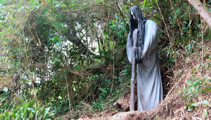 Las tenebrosas imágenes, cargadas de realismo y ubicadas en sitios estratégicos como curvas, han espantado a más de un caminante.