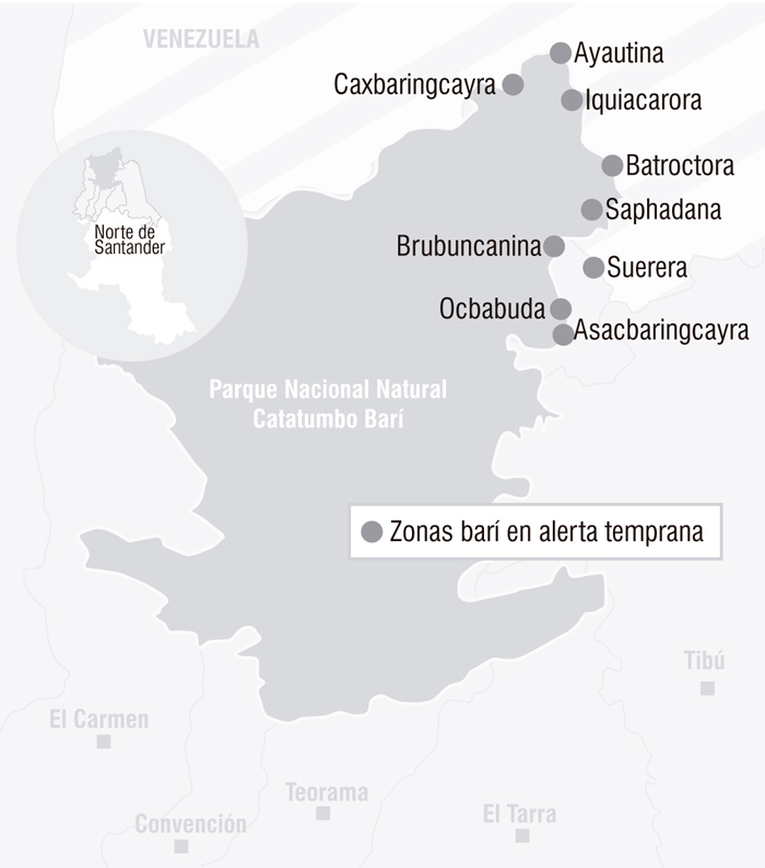 La alerta temprana indica que solo pueden permanecer en la zona las personas que tengan predios o fincas con escrituras en regla, ya que ese territorio es considerado sagrado para el pueblo barí.