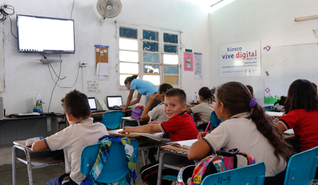 Sueñan con una hermosa y amplia escuela, pero prefieren no hacerse ilusiones, lo han escuchado tantas veces que ya no les emociona. Y es que estos pequeños no conocen más que estas cuatro paredes donde el salón sirve para todo; es un kiosco Vive Digital que ellos han ‘invadido’.