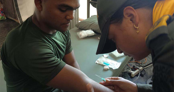 Mientras sus superiores les presentaron a los líderes de las Farc detalles del nuevo Código de Policía, Díaz prosiguió en sus tareas de inyectar, tomar muestras de sangre, y preservar la seguridad de uniformados y guerrilleros.