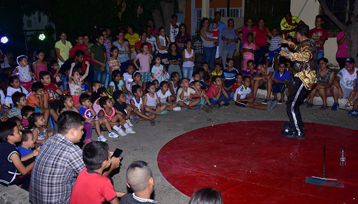 El espectáculo gratuito mantiene entretenida a toda la comunidad con malabares, danza y teatro.