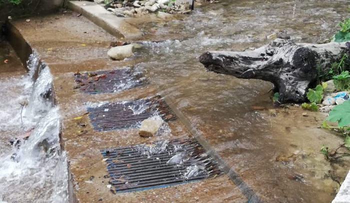 La bocatoma de la planta de tratamiento Monteadentro, en Pamplona, cuyas aguas antes hacían invisible la rejilla, hoy son escasos hilos.