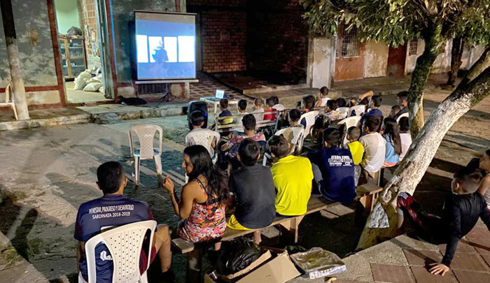 La actividad denominada #CineAlParque se realiza con el fin de estrechar lazos de amistad y lograr un acercamiento con esta comunidad afectada por la violencia.
