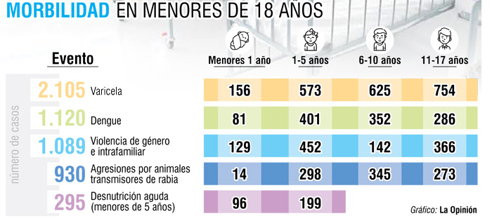 Varicela, dengue y violencia de género e intrafamiliar ocupan los tres primeros lugares de casos que afectan la salud de menores de 18 años en el departamento, según datos presentados en el más  reciente Consejo de Política Social, situación que genera inquietud entre las autoridades locales.