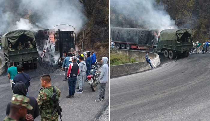 Cabe recordar que el miércoles en la noche, en el sector conocido como El Tarrita (vereda Brisas del Tarra), en la vía Ábrego-Cúcuta, desconocidos interceptaron dos tractomulas e hicieron bajar a los conductores, para luego incinerar los vehículos.