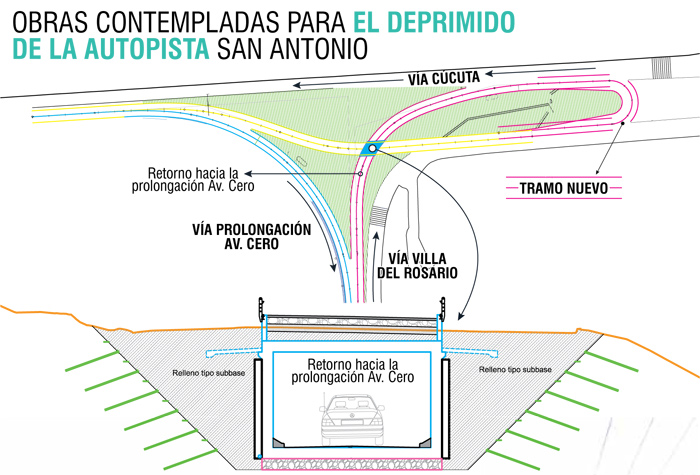 Otra de las obras de gran envergadura que se hará en materia de vialidad en el área metropolitana es la construcción de otro deprimido en la intersección del anillo vial con la vía a El Zulia. Este es el cruce más grande que va a intervenir San Simón.