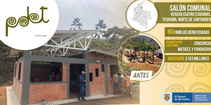 La comunidad de Cuatro Esquinas en el municipio de Teorama, en Norte de Santander, agradece a la @AgenciaTierras y demás agencias del Gobierno Nacional por impulsar obras sociales a instancias de los Programas de Desarrollo con Enfoque Territorial- PDET.#ElPDETesDeTodos pic.twitter.com/Xa8D5U6nGN