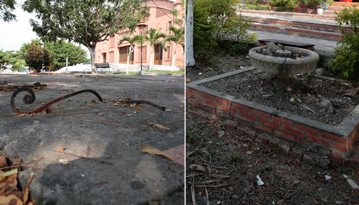 Del parque del barrio Chapinero, ubicado a las afueras de la Iglesia Los Santos Apóstoles, solo quedan algunas partes de las bancas en las que hace tiempo podían descansar los habitantes del sector.