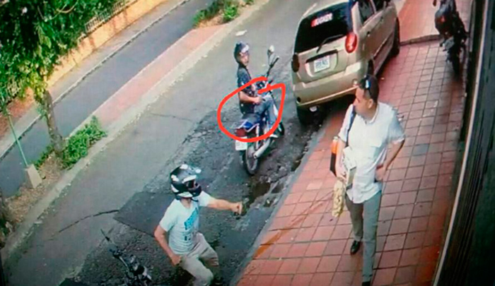 Las fotografías que fueron difundidas por redes sociales, muestran claramente como dos hombres en moto, roban a un ciudadano en la Av. 9E con calle 4.
