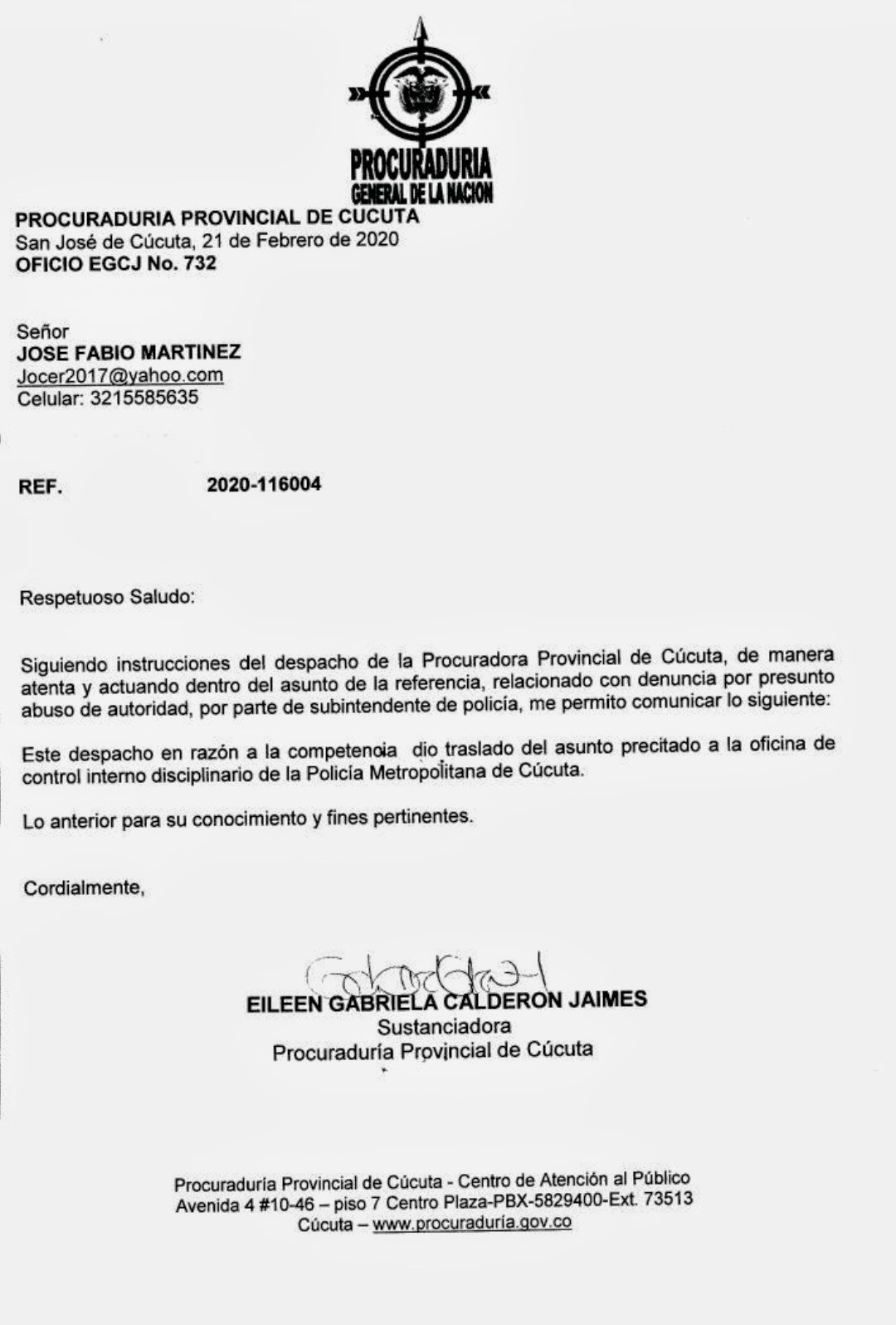 Por este motivo, José Fabio radicó el caso ante la Fiscalía por lesiones personales, más daños y perjuicios en bien ajeno; y ante la Procuraduría Regional de Cúcuta, por presunto abuso de autoridad.