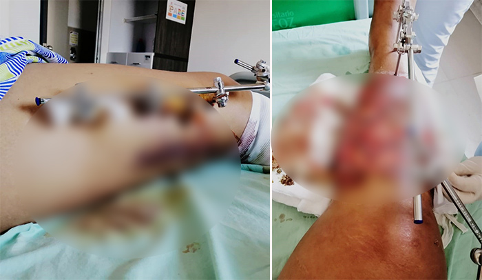En diálogo con La Opinión, el denunciante asegura que lleva más de un mes en el Hospital Erasmo Meoz, tiempo en el que se ha sometido a una cirugía por las lesiones múltiples en su pierna derecha.