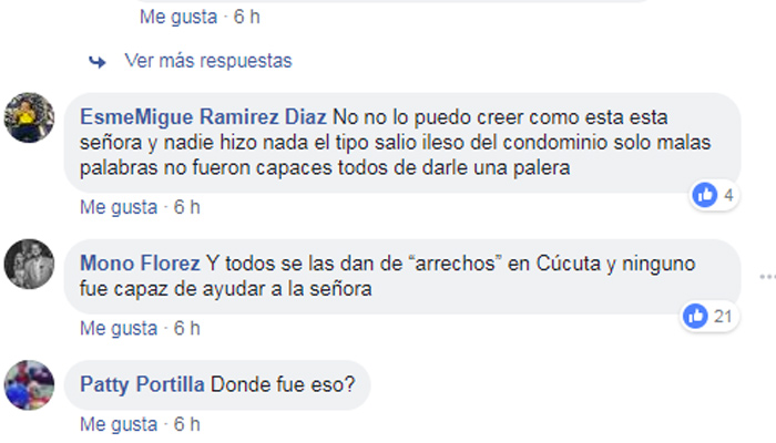 En los comentarios no solo se reprochaban los golpes a la mujer, varios usuarios de redes sociales también se refirieron al hecho de que en estos casos se hagan grabaciones con teléfonos celulares y no se ayude a la víctima.