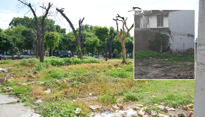 (Frente al terreno abandonado, refugio de habitantes de la calle, está el Parque de Los Niños.)