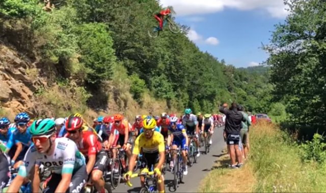 Ciclomontañista saltó sobre el pelotón del Tour de Francia
