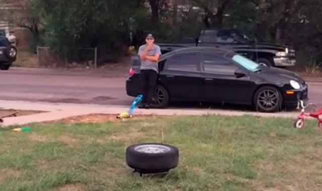 Tremendo susto se llevaron al ver lo alto que llegó la llanta.