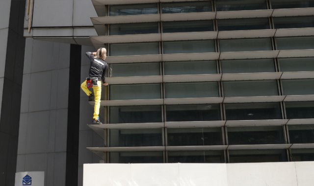 El aventurero de 56 años escaló la Torre GT de 47 plantas ante la mirada atónita de los transeúntes.