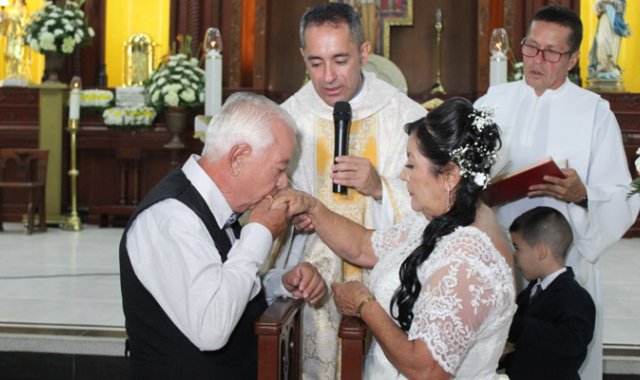 Una pareja de enamorados se casa después de los 70 años