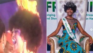 A Miss Congo se le incendió su cabello en plena coronación con Miss África