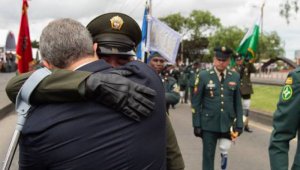 Lágrimas de patrullero víctima de minas antipersona en el desfile militar