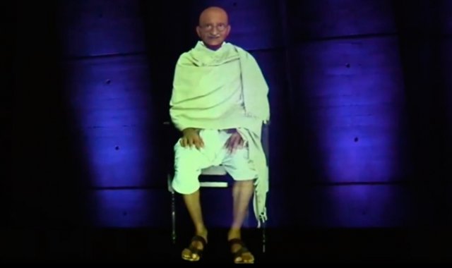 Un holograma de Gandhi a tamaño real participa en un evento de la Unesco
