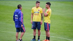El estratega argentino estuvo conversando durante varios minutos con Falcao García y James Rodríguez.