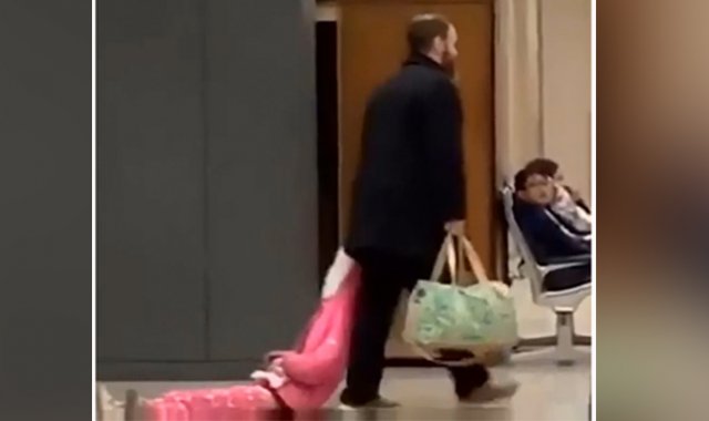 Papá que arrastra a su hija en el aeropuerto se hace viral en redes
