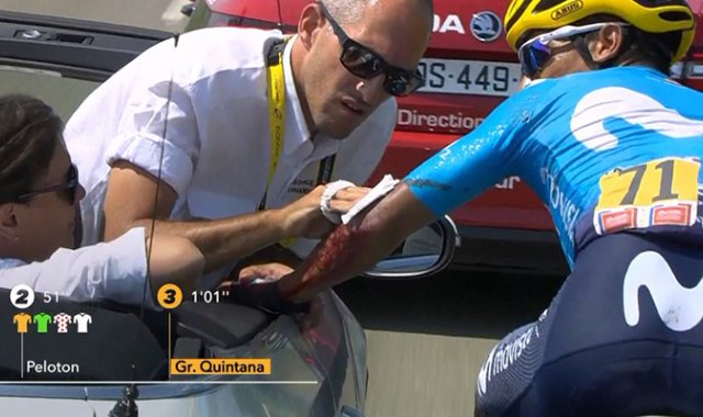 'Espero poder recuperarme con los fisios', afirma Quintana tras caerse en el Tour