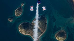 Para celebrar San Valentín, los paracaidistas hicieron una formación en este lugar de Croacia.