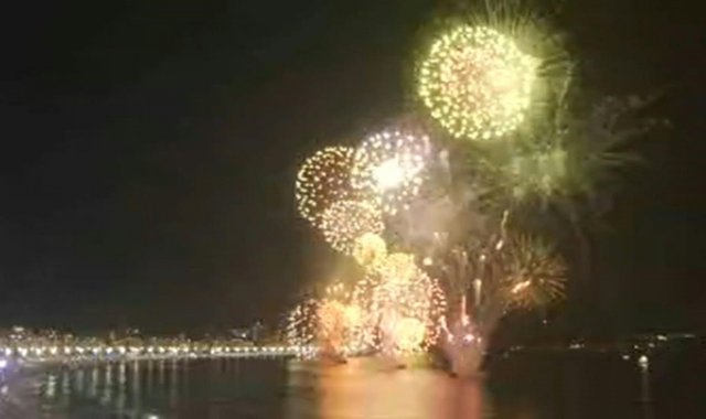 Los tradicionales festejos con música y fuegos artificiales atraen multitudes a la playa Copacabana.